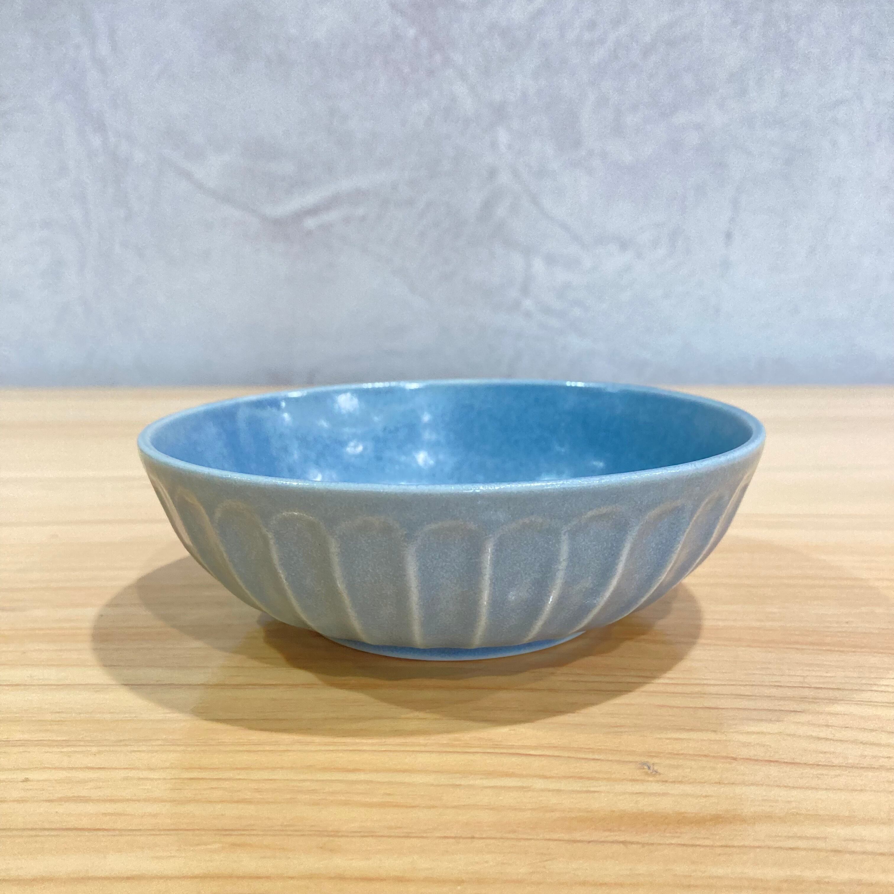 器の表面にシャープな筋模様を施す「シノギ」の技法で仕上げた、立体感のある小鉢です。