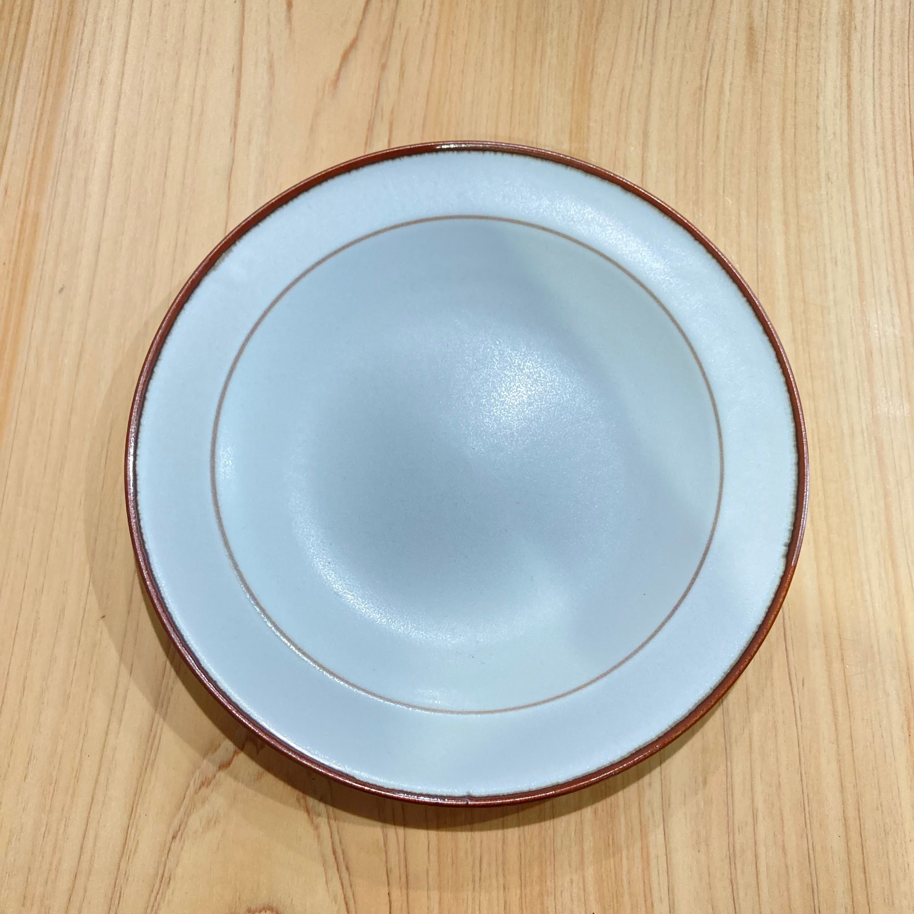 縁と中間に入った茶色のラインがシンプルながら温もりを