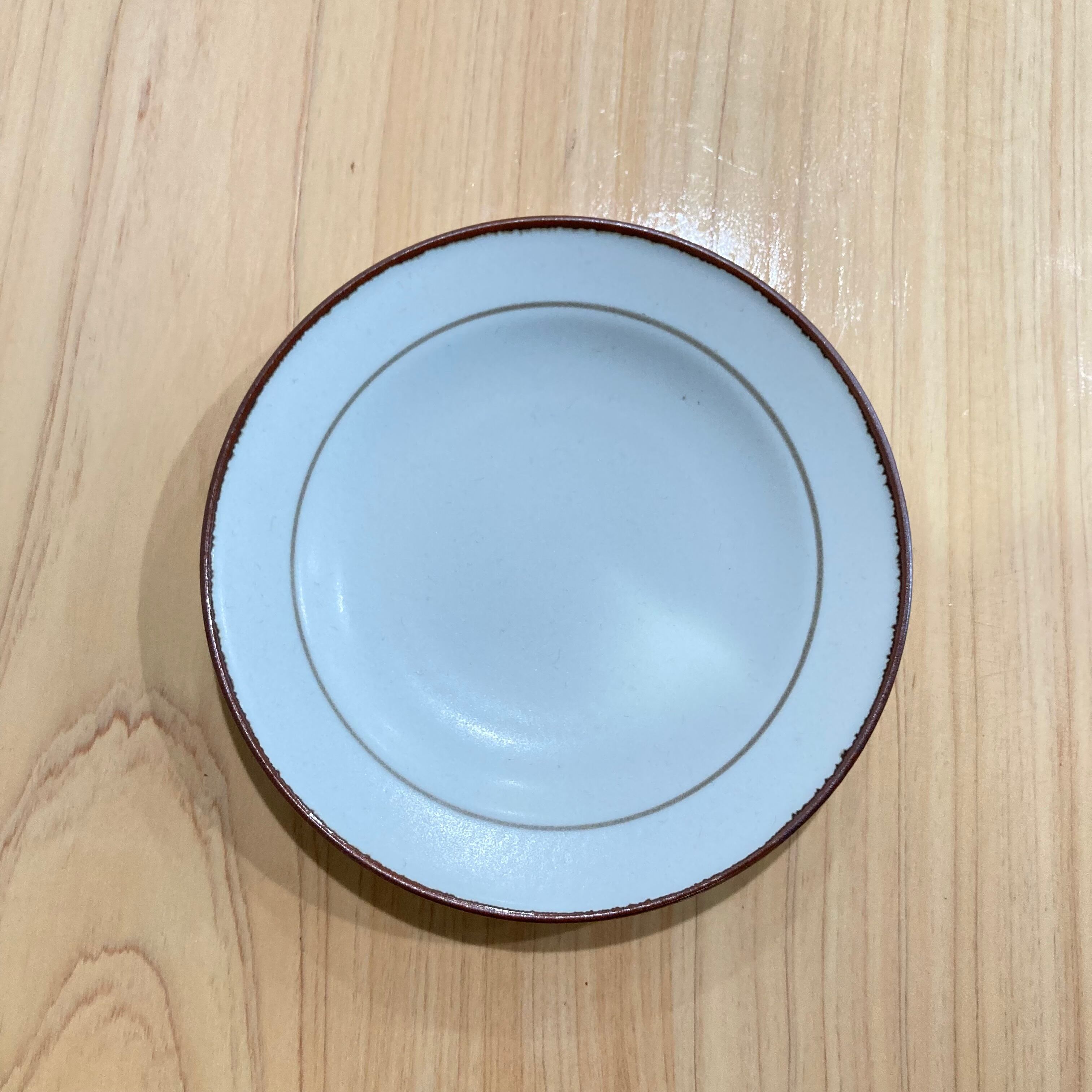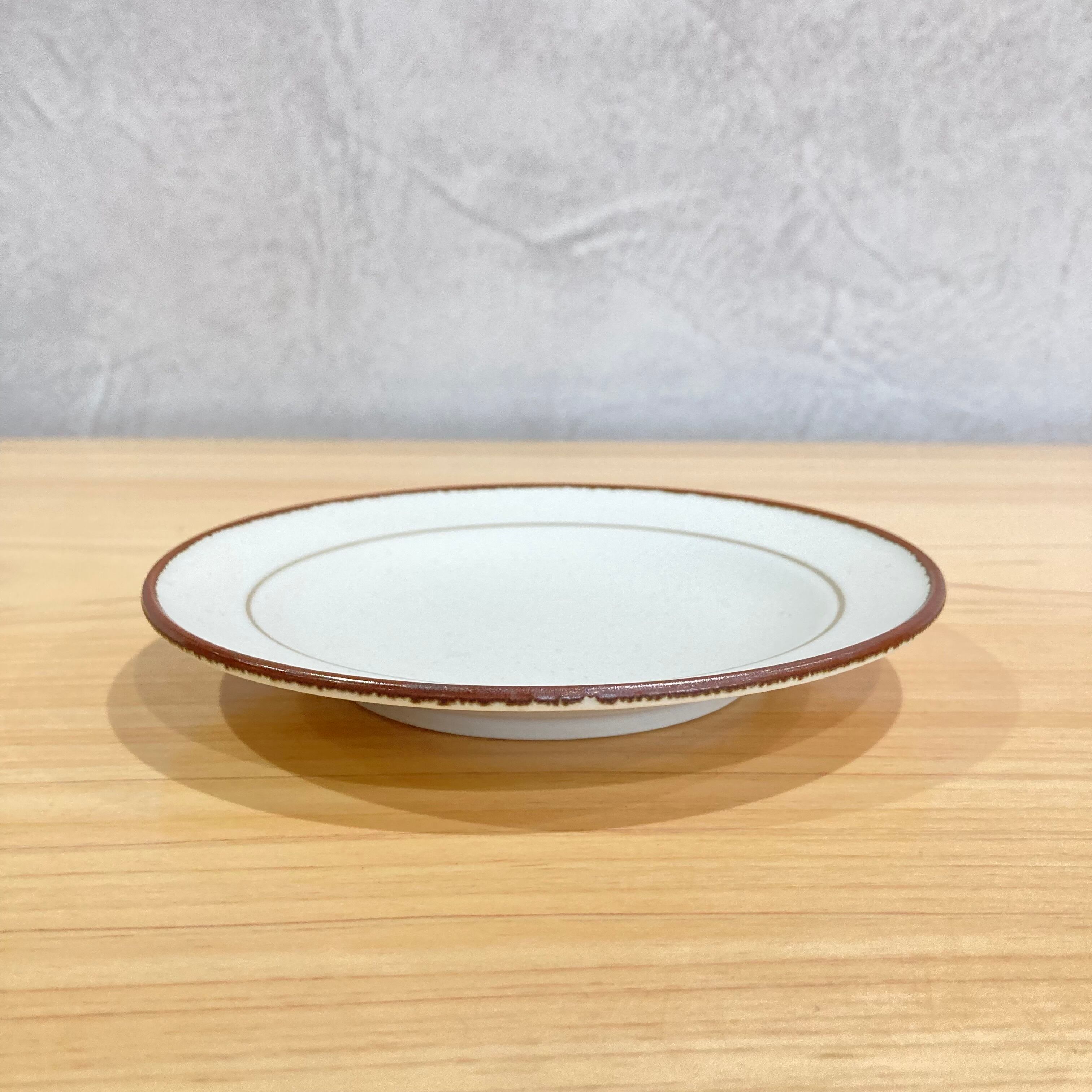 縁と中間に入った茶色のラインが、シンプルながらも温かみのあるアクセントになっています。