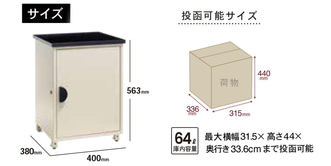 最大横幅31.5×高さ44×奥行33.6㎝の荷物が投函可能!(耐荷重20㎏)